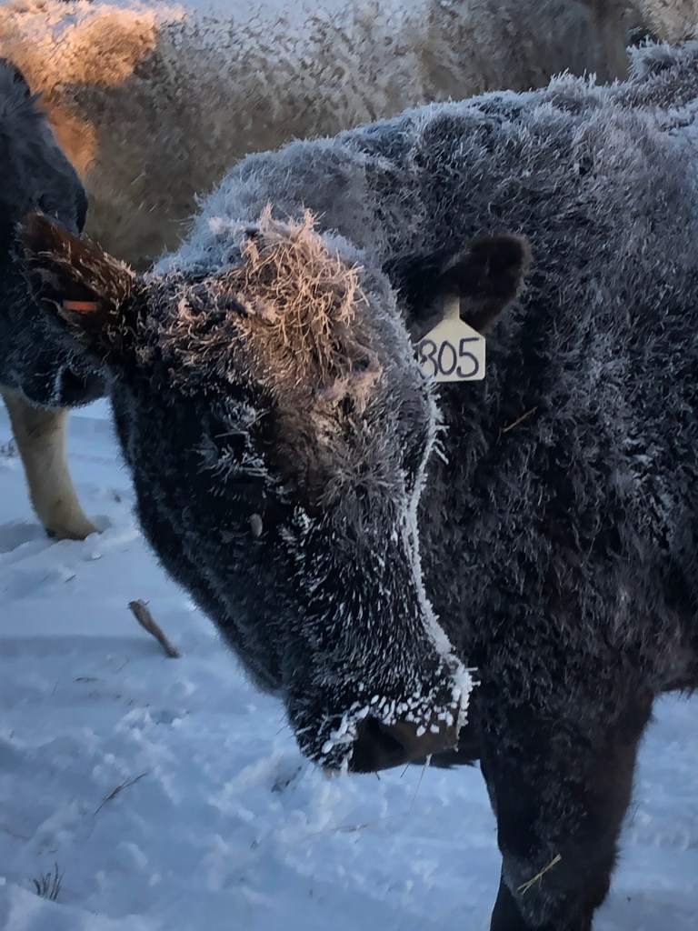 It always amazes me that livestock survive this kind of weather at all, let alone thrive. We feed them extra rations in bitter cold and give them a bed of straw, but still…
