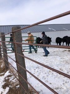 Though we had good weather, the ground was icy so the Head Honcho chose to run the gate with the least chance of fast action. None of us slipped or fell, but a few of the calves did a little skating.