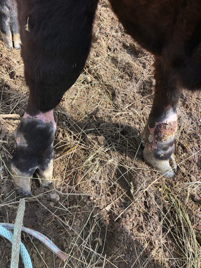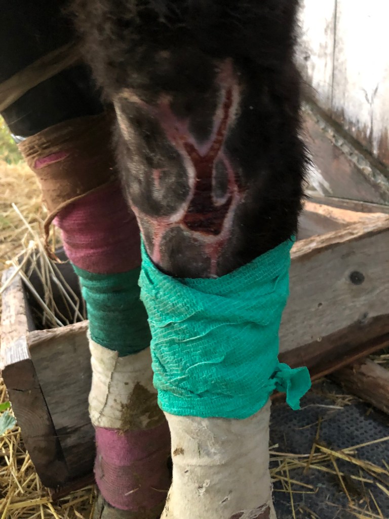 I started keeping a pictorial history so I could see the healing progression on each leg since the longer this went on the more the details blended in my mind. I think that much of it is too gruesome to share, but am including a couple videos and a few photos that show the extent of the bandaging and resulting scars. I can’t say a final photo because we aren’t done, though the last photo shows Thor with a lot of hair regrowth- but it doesn’t show his scabs. Last winter we kept him near the corral so he had a shed for protection from severe weather, and I made loose boots for every leg to keep his legs from getting too cold because then he still didn’t have much hair. Keeping his boots on and clean was another challenge! He even had an insulated set and a couple that weren’t insulated for cold but not bitterly cold weather.